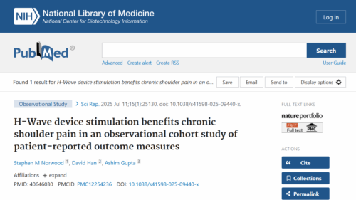 We’re excited to share our newest peer-reviewed publication: H-Wave device stimulation benefits chronic shoulder pain in an observational cohort study of patient-reported outcome measures 1496 shoulder patients reported: View at: https://pubmed.ncbi.nlm.nih.gov/40646030/ Chronic shoulder pain […]